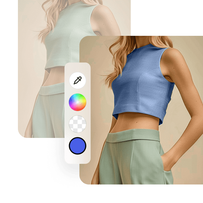 No more reshooting the same product in different colors. The AI Color Changer lets you instantly recolor apparel, accessories, or home goods with photorealistic results. Perfect for stores with multiple color variants, this tool makes it easy to present every option cleanly and consistently, while maintaining lighting, shadows, and texture accuracy. Give customers a clearer shopping experience and reduce friction at checkout — all while saving time and money on photo production.