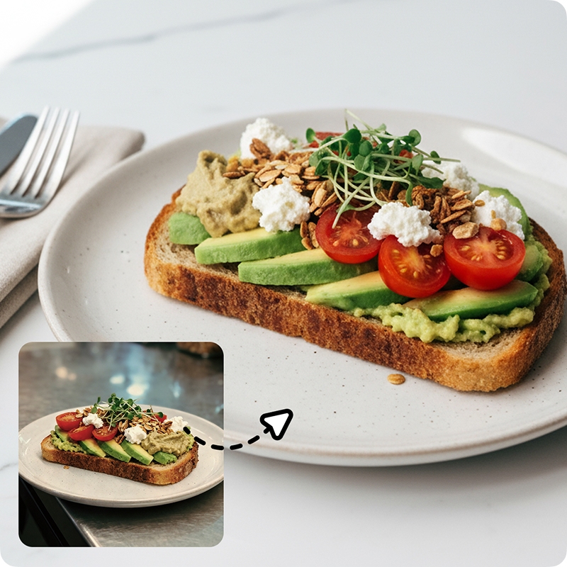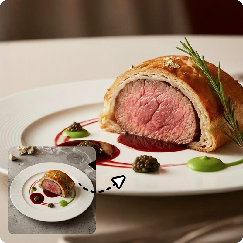 The results are completely customized to ensure the images perfectly capture your unique shop aesthetic and dish style, making your photos highly eye-catching and instantly ready for your menu and marketing.