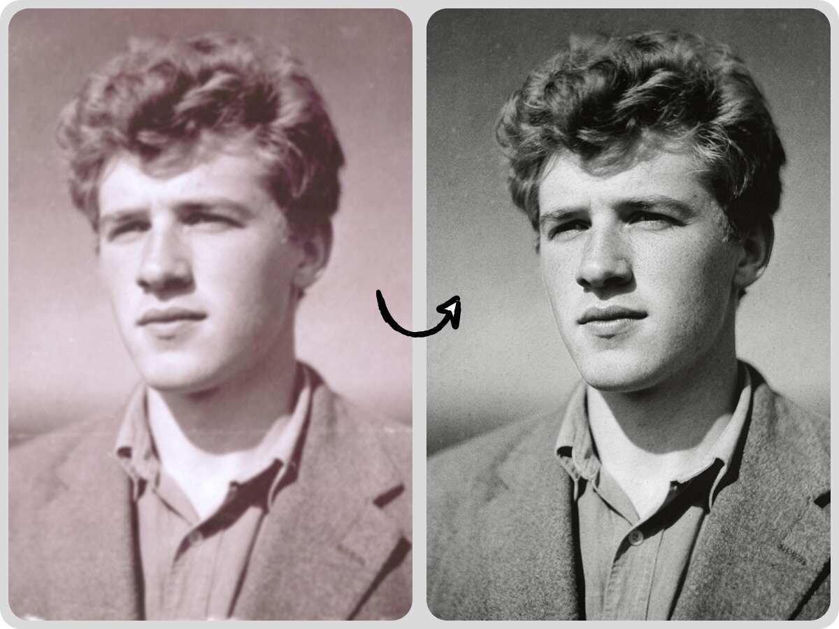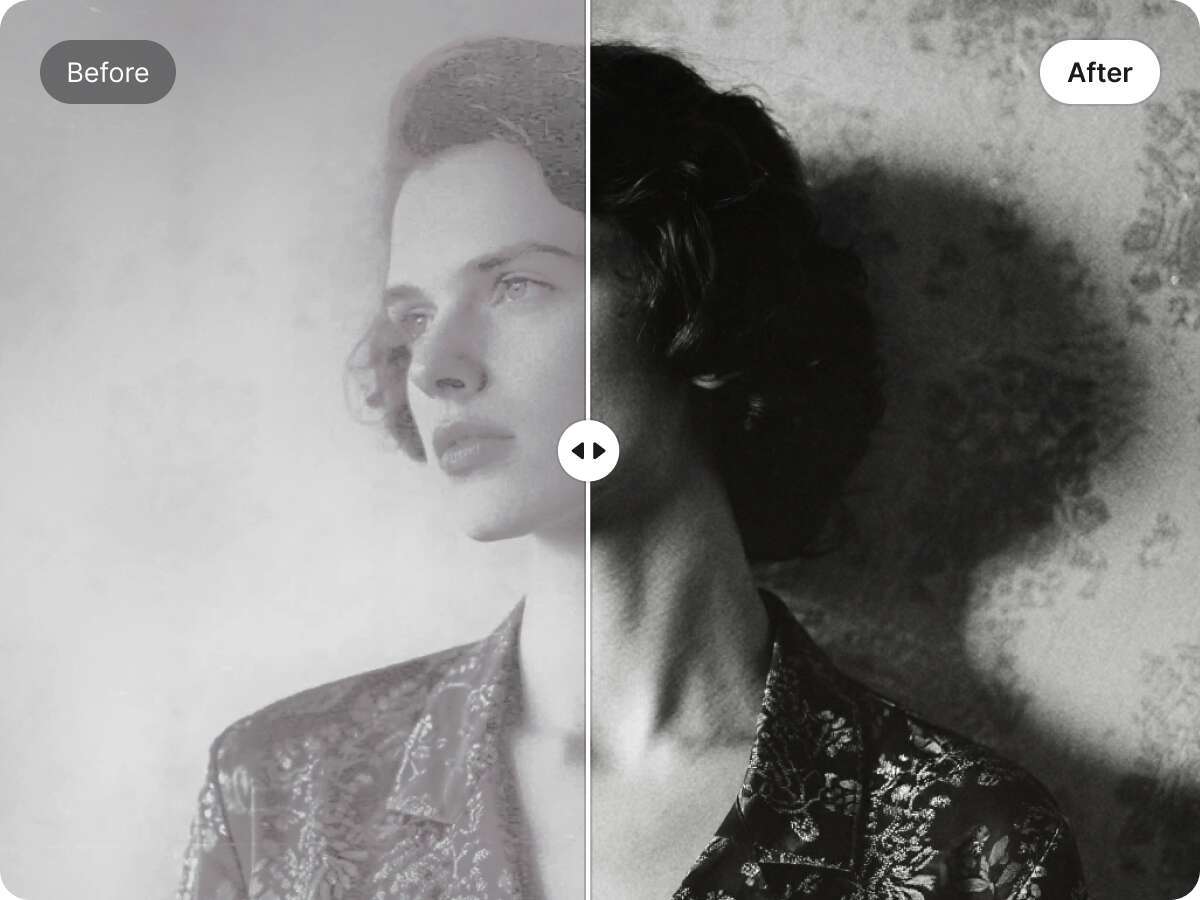 Use the AI photo restoration to restore faded photos and bring color back. Repair tears and restore blurry photos online in seconds. Perfect for family albums and archives.