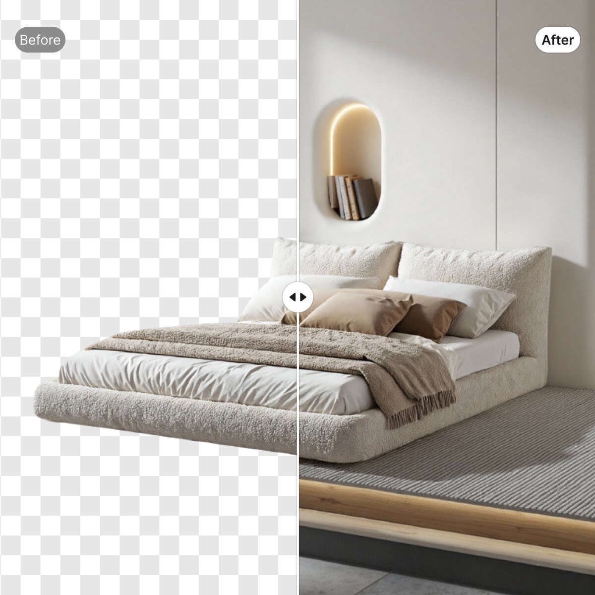 The AI technology ensures that the whole process of background generation is instant and smooth, to reduce dependency on manual product photography.