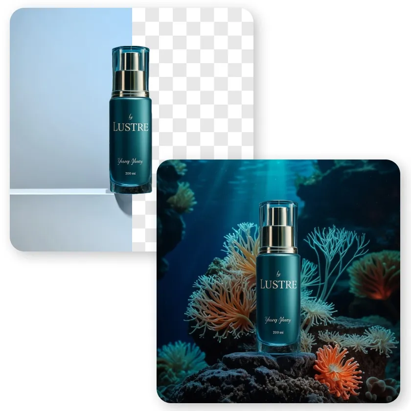 Gone are the days when you had to hire a designer to create stunning backgrounds. In a few simple steps, you can create scenes with AI for your product images and social media posts. No editing skills or design experience needed. The AI tool analyses the subject and the background instantly and suggests stunning backgrounds. Plus, you can edit multiple elements and make the AI scene completely customizable.