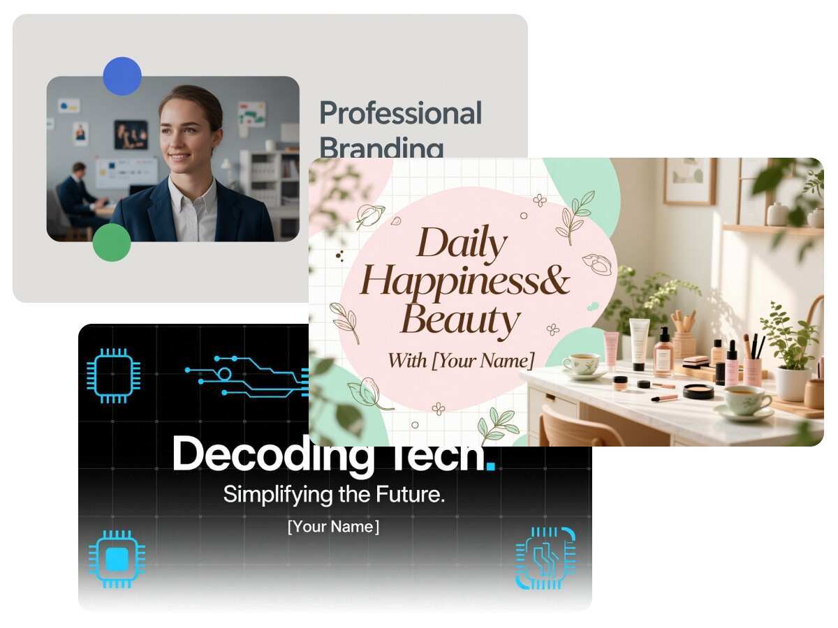 Create bold banner designs for YouTube channels with perfect dimensions, thumbnails, and headers that grab subscribers instantly.