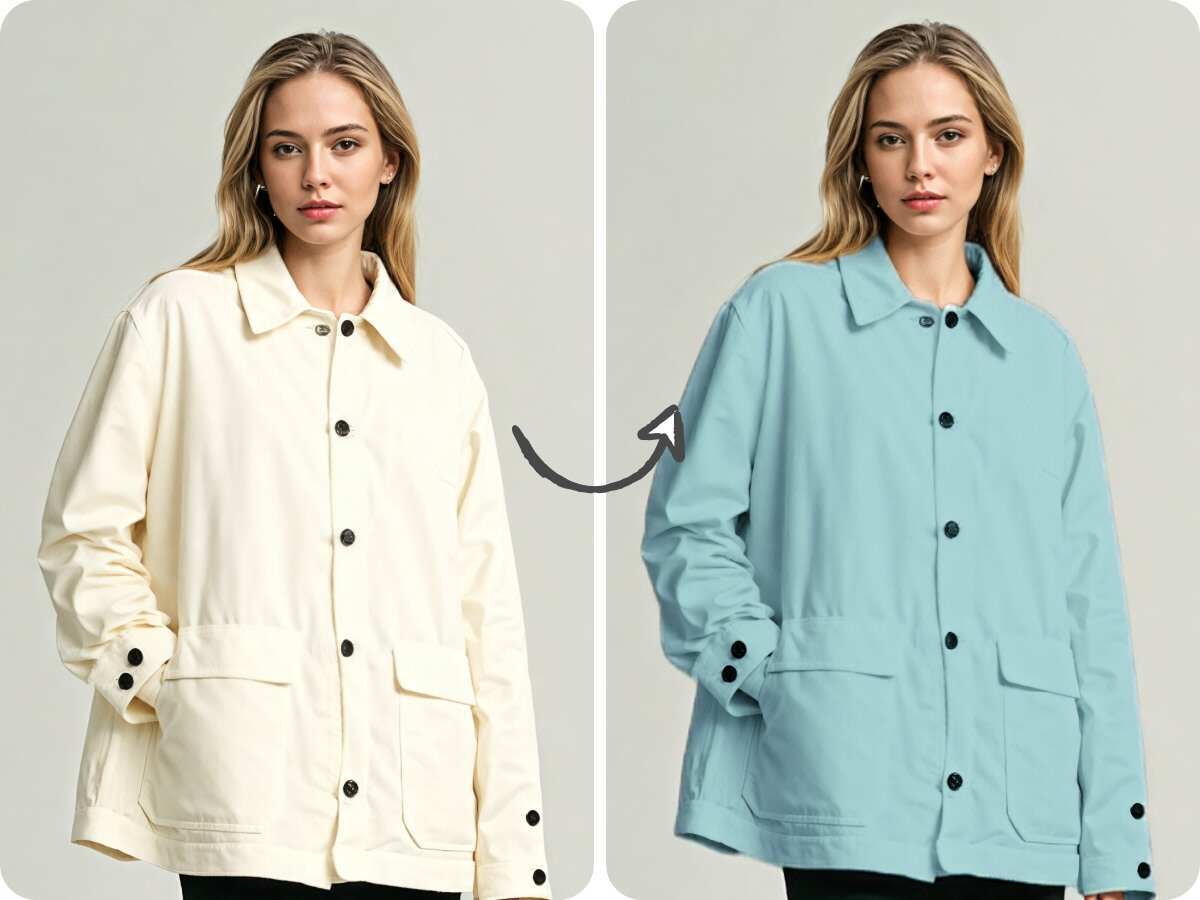 Quickly change the color of any clothing item in your images with this AI clothes color changer. This powerful online clothes color changer tool allows for real-time clothes color edits, enabling you to experiment with different shades and designs instantly for a polished look.