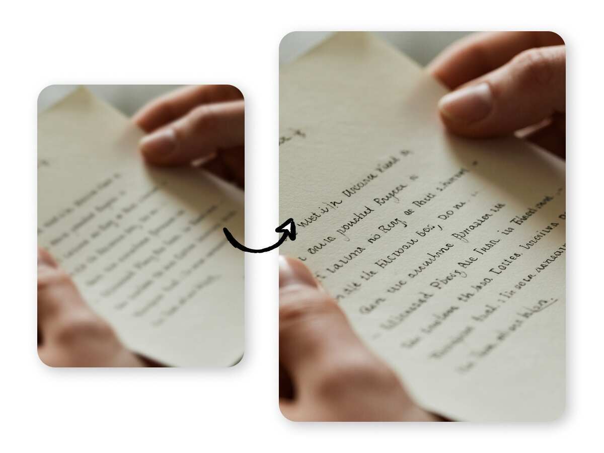 Be it's faint handwriting or blurry text on an image, our tool reconstructs sharp, legible text by identifying letter shapes and edges, even in low-resolution images.