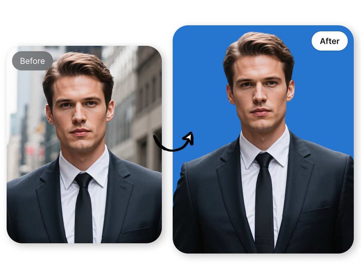 Remove the passport photo background online effortlessly. This AI tool lets you change the Passport photo backgrounds with ease without any design skills.