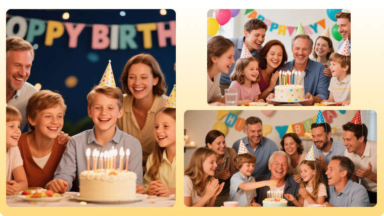 Highlight cake and friends in a cheerful photo in a collage that makes birthdays unforgettable.