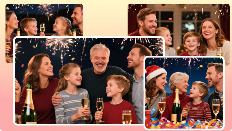 Celebrate new beginnings with vibrant, festive collages that show excitement and joy in every image.