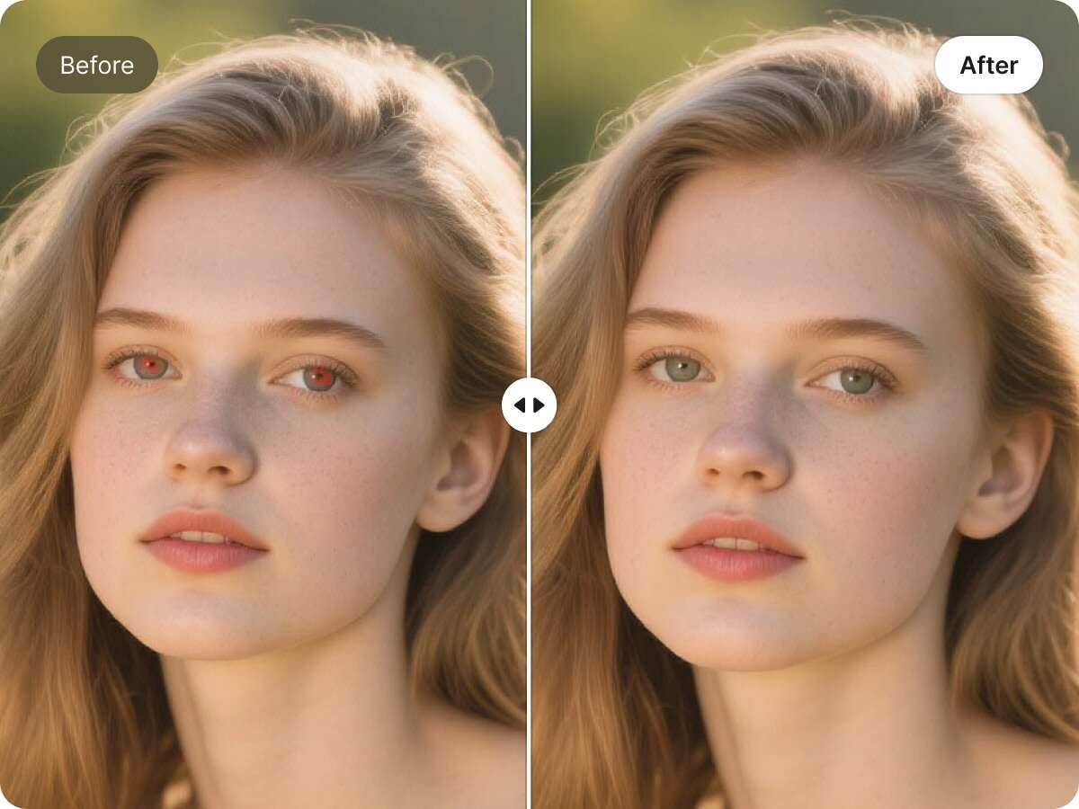 Quickly remove red eye in photos online for free. The tool helps remove the red eye with AI precision.