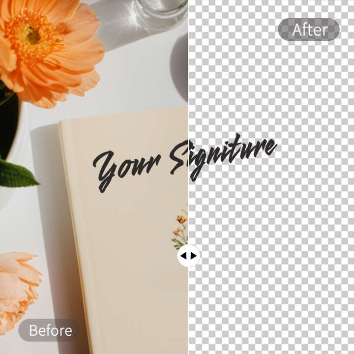 Clean up your signature effortlessly. Our AI strips away the background—precisely, quietly, and mess-free. What you get: a sharp, transparent signature, ready for everything from contract sign-offs to digital branding. No rough edges, no touch-ups—just a crisp cutout that works wherever you place it.