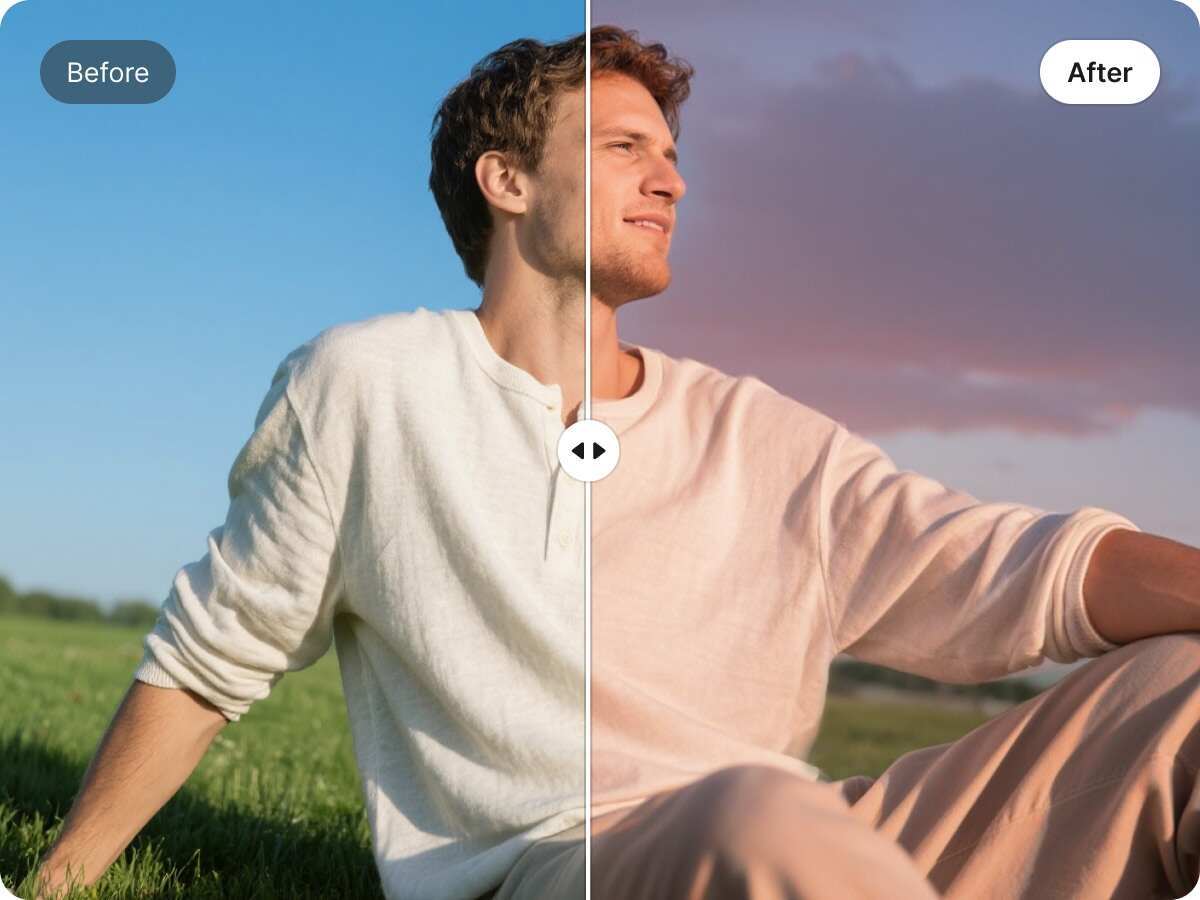 Engagement Friendly: Make scroll-stopping content. Replace sky in photo to boost visual appeal for reels, stories, and ads.