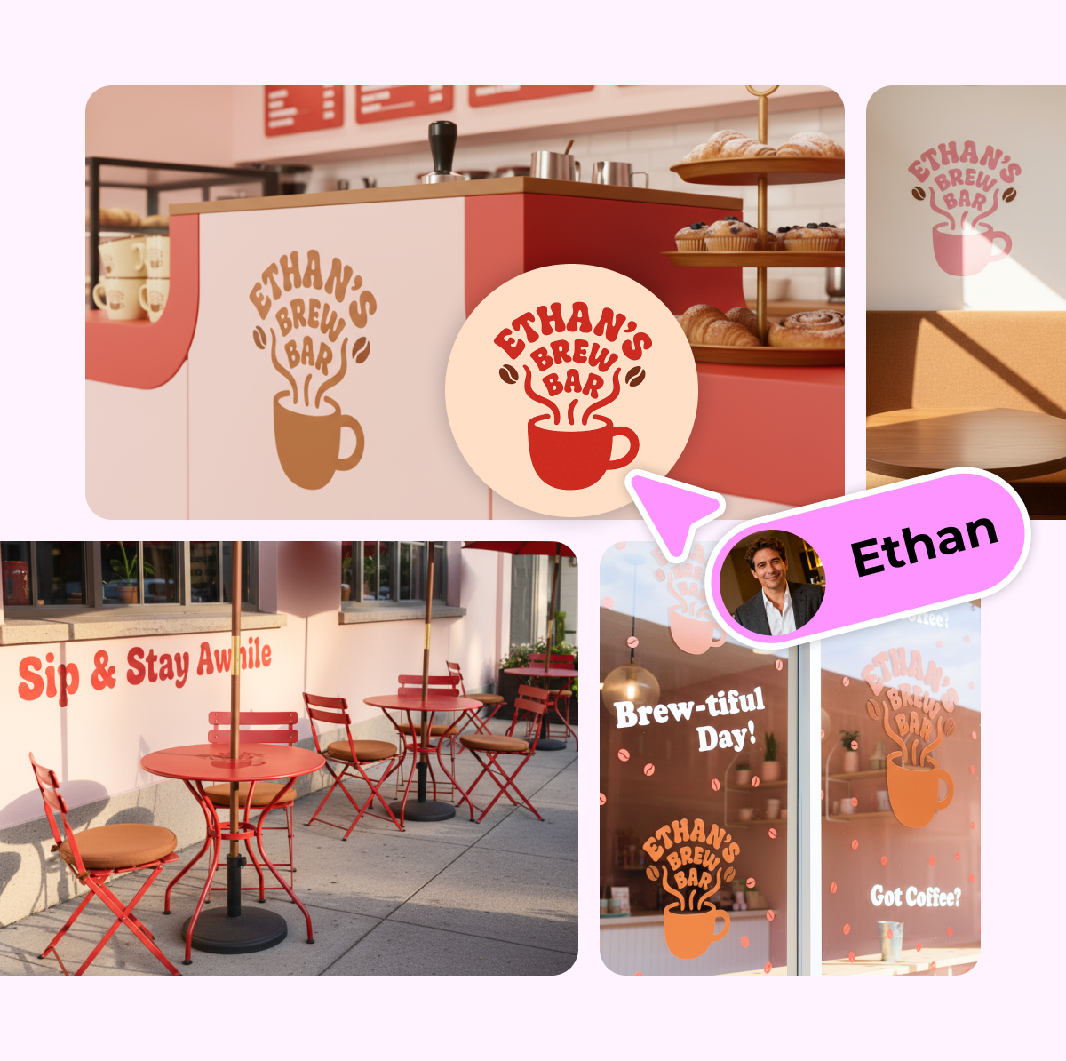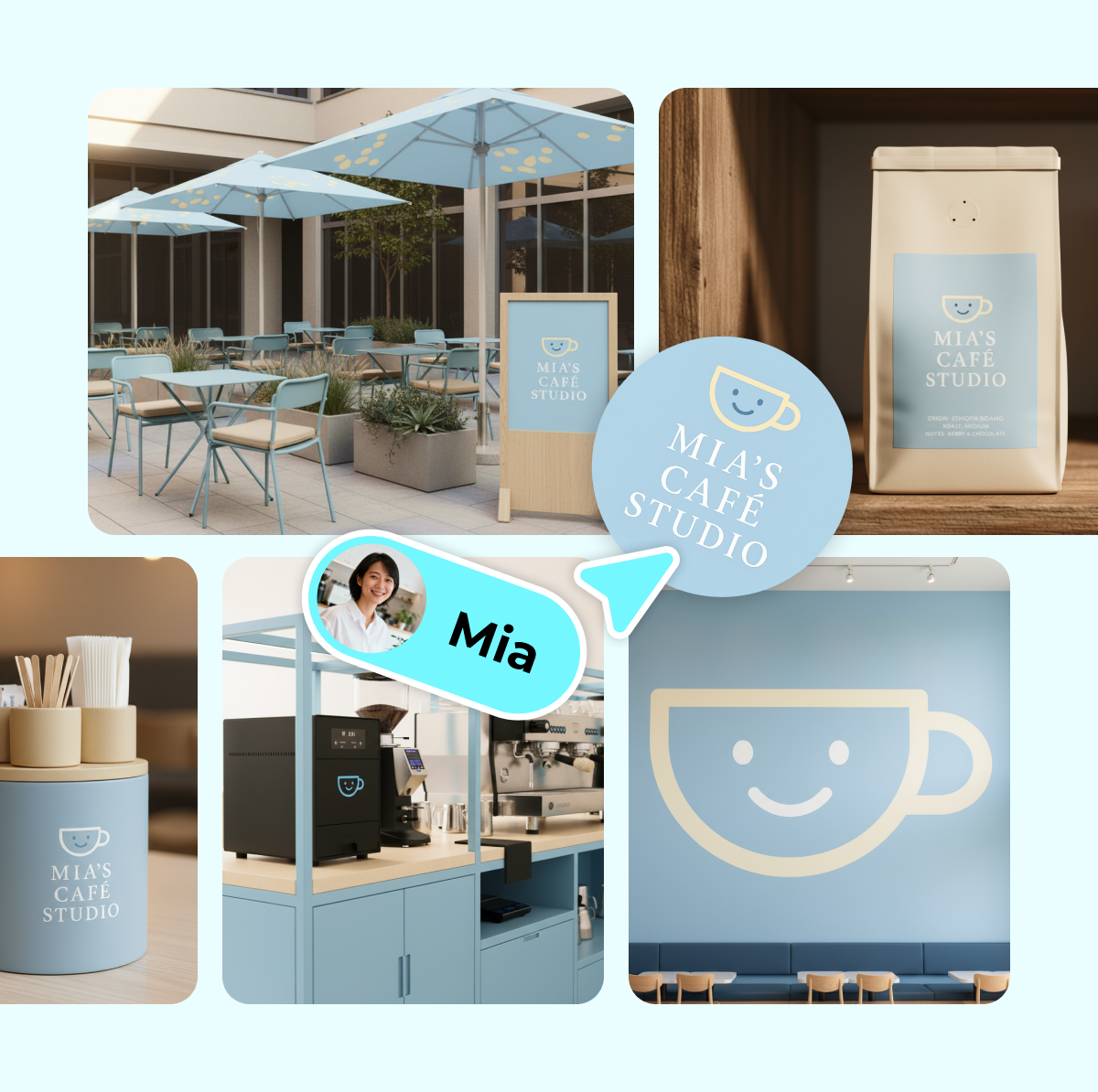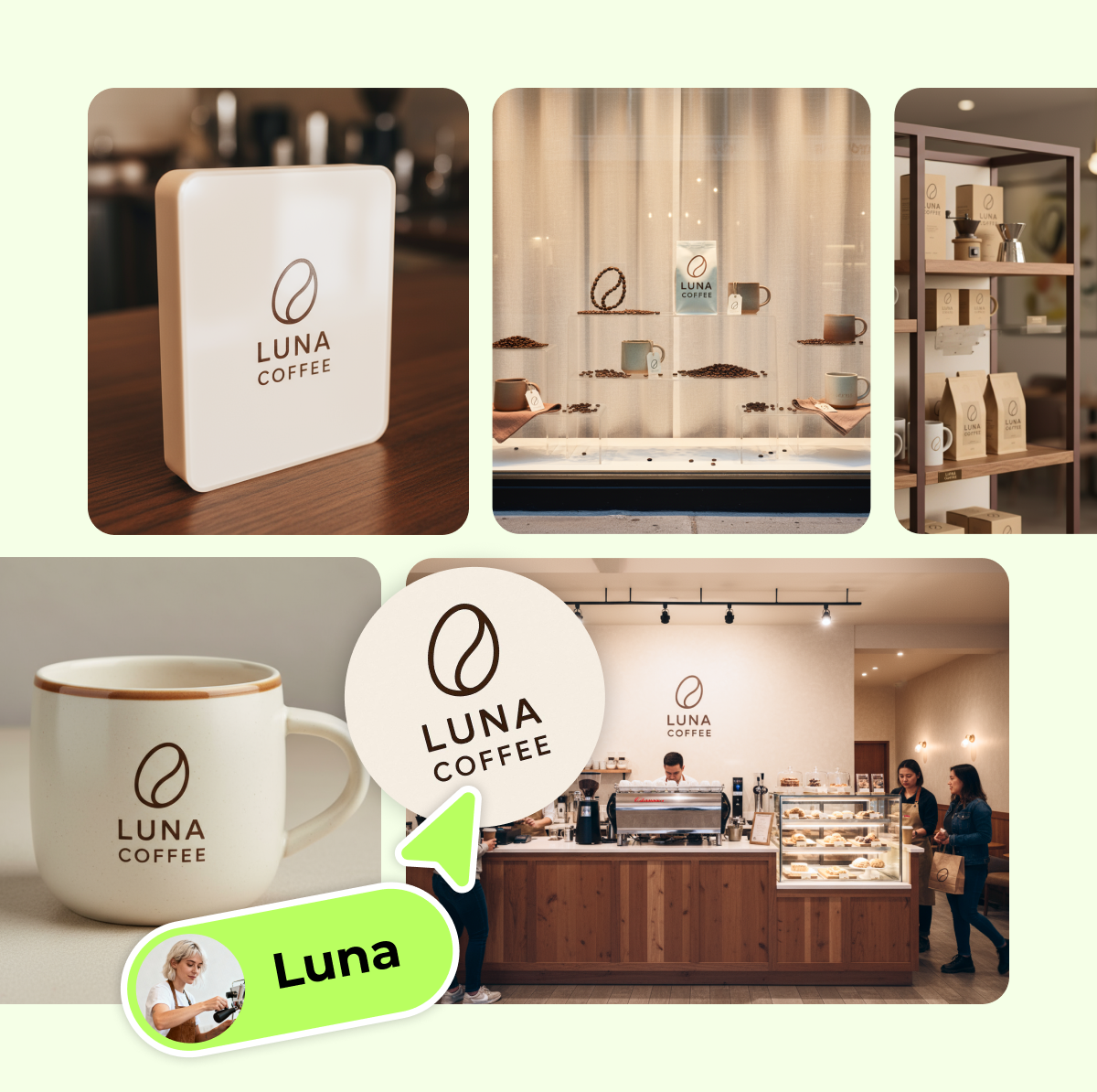 Turn your ideas into a complete coffee shop brand identity, instantly.