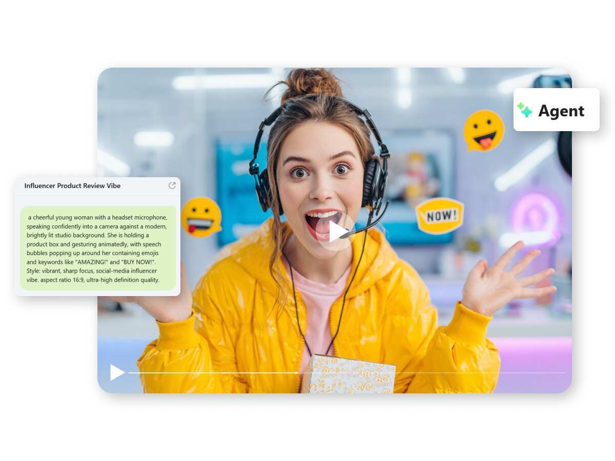 Start by typing your script, idea, or product description into the AI agent. Choose your preferred style and upload your brand assets to ensure videos stay on-brand.