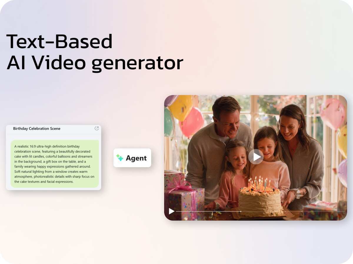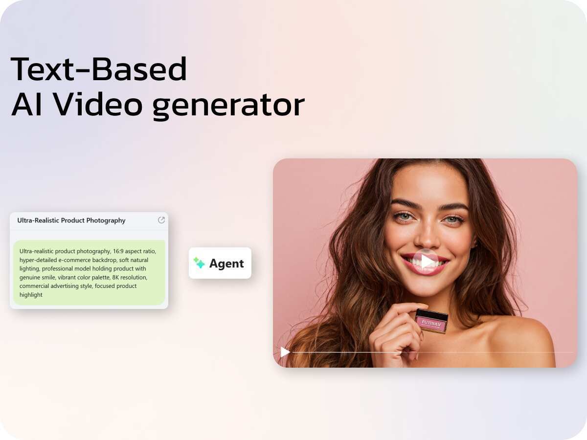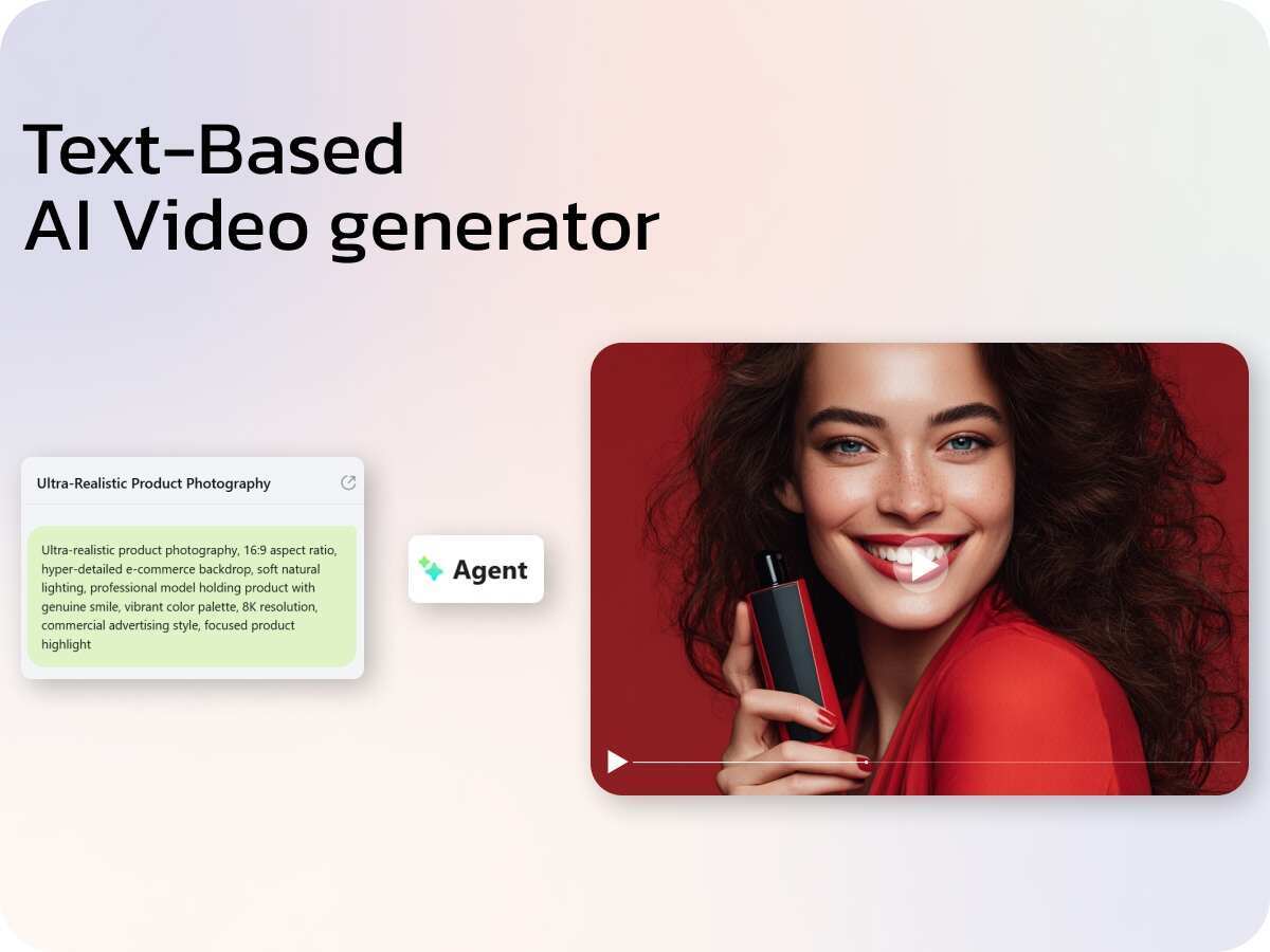 Need a perfect video that matches your brand identity? Choose from options like cinematic, motion graphics, and more. The AI agent shapes your text into a visually appealing video. Create professional content that resonates with your brand identity and audience without needing editing skills and expertise.