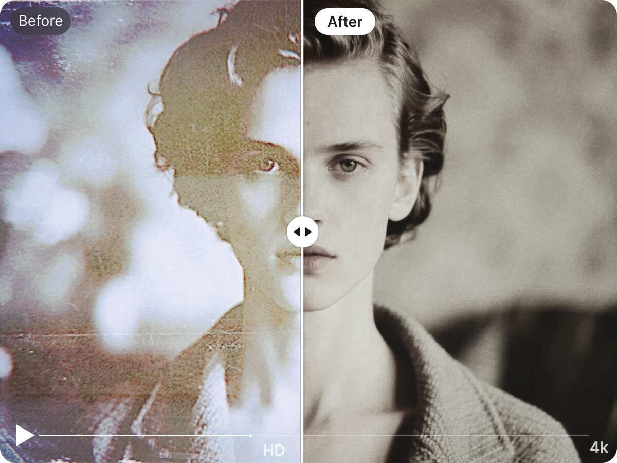 Editing together clips shot in different qualities can be jarring. Upscaling makes them feel consistent, whether merging low-res phone video with 4K footage or reconstructing layered archival footage.